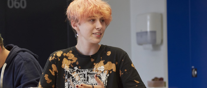 Fragt man die Mitglieder der Rassismus-AG nach ihrem persönlichen Highlight, kommen ganz verschiedene Antworten – aber eine Veranstaltung hat alle in ihren Bann gezogen. „Ende 2022 war der Zeitzeuge und Holocaust-Überlebende Ivar Buterfas-Frankenthal an unserer Schule zu Gast“, erinnert sich Neziha Ciftci. Unter dem Motto „Verzeihen? Vielleicht ja. Vergessen? Nie!“ erzählte der 89-Jährige vor rund 160 Schülerinnen und Schülern in der Aula seine Lebensgeschichte – von der Zeit des Nationalsozialismus bis heute. „Das war wirklich bewegend“, erinnert sich Simon an die größte Aktion bisher. „Das Interesse war so groß, dass sich weitere Schulen online dazu geschaltet und das Gespräch im Stream verfolgt haben.“ Unabhängig von einzelnen Events, Gedenkstättenfahrten oder Schulaktionen schätzt Marita vor allem die Beständigkeit der Gruppe. „Gegen Rassismus und Diskriminierung, für Menschenrechte: Anstatt zuhause zu sitzen und uns über die Welt zu ärgern, setzen wir uns für die Dinge ein, die uns wichtig sind“, sagt die 19-Jährige. „Das gibt mir ein gutes Gefühl.“