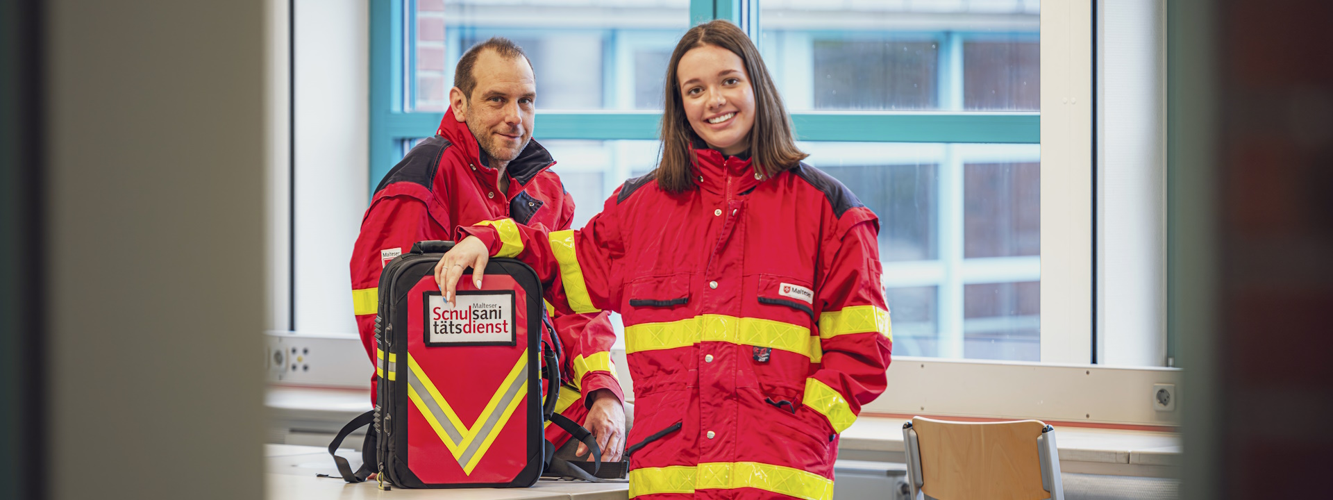 Wenn Anna-Lena Naujoks als Schulsanitäterin im Einsatz ist, hat sie den Erste-Hilfe-Rucksack immer dabei.Engagement in der Schülerschaft für mehr Sicherheit