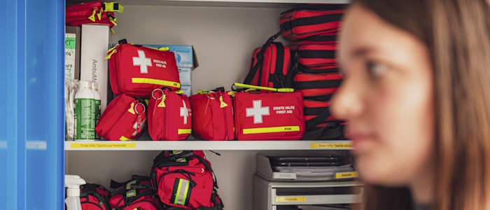 - Regelmäßige Überprüfung und Ergänzung des Erste Hilfe-Materials in den Fachbereichen und Sporthallen sowie des Schulsanitätsdienst-Materials