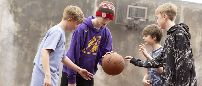 Die meisten Schülerinnen und Schülern zieht es aber nach draußen auf den Schulhof. Dort sorgen eine Bewegungskiste mit unterschiedlichen Spielen, der beliebte und stets umlagerte Basketballkorb und die große Kletterwand für unterschiedliche Bewegungsangebote. Dazu Andreas Lange, der selbst Sportlehrer ist: „Wir wissen, wie wichtig es für die Kinder ist, sich in ihren Pausen austoben und bewegen zu können. Der Schulhof ist eigentlich immer voll und am beliebtesten sind die Klassiker Fußball, Basketball und die Kletterwand.“