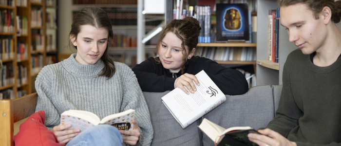 Und was machen die Schülerinnen und Schüler noch so während ihrer Pausen? Wer sich zurückziehen will und es eher ruhig mag, der kann die täglich von 9 bis 16 Uhr geöffnete Bibliothek besuchen. „Das Angebot schätzen vor allem Kinder der 5. und 6. Klassen und manchmal die Zehntklässler, vor allem vor Klassenarbeiten oder der wichtigen Abschlussprüfung“, erklärte Andreas Lange. Hier kann man in Ruhe lesen, recherchieren und lernen. Emily und Sarah, beide in der 10. Klasse, gehen in ihren Pausen aber auch gern an der frischen Luft spazieren, während ihr Klassenkamerad Theo das Café10 bevorzugt und dort mit seinen Freunden Uno spielt. „Das entspannt mich“, sagt er.
